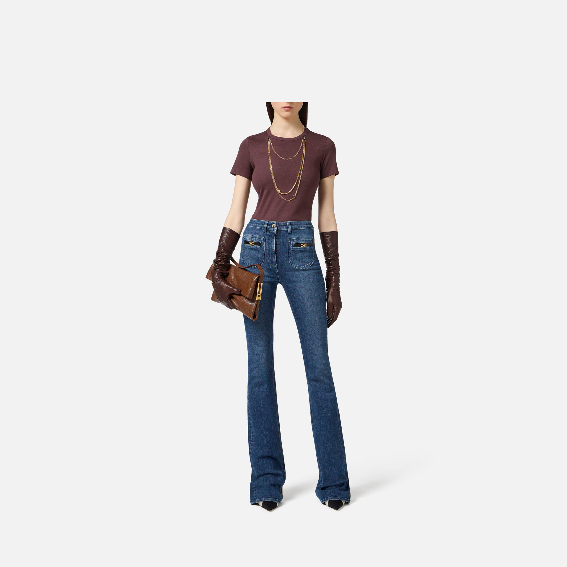 Blugi Elisabetta Franchi – Blugi slim cu talie medie și picior ușor evazat