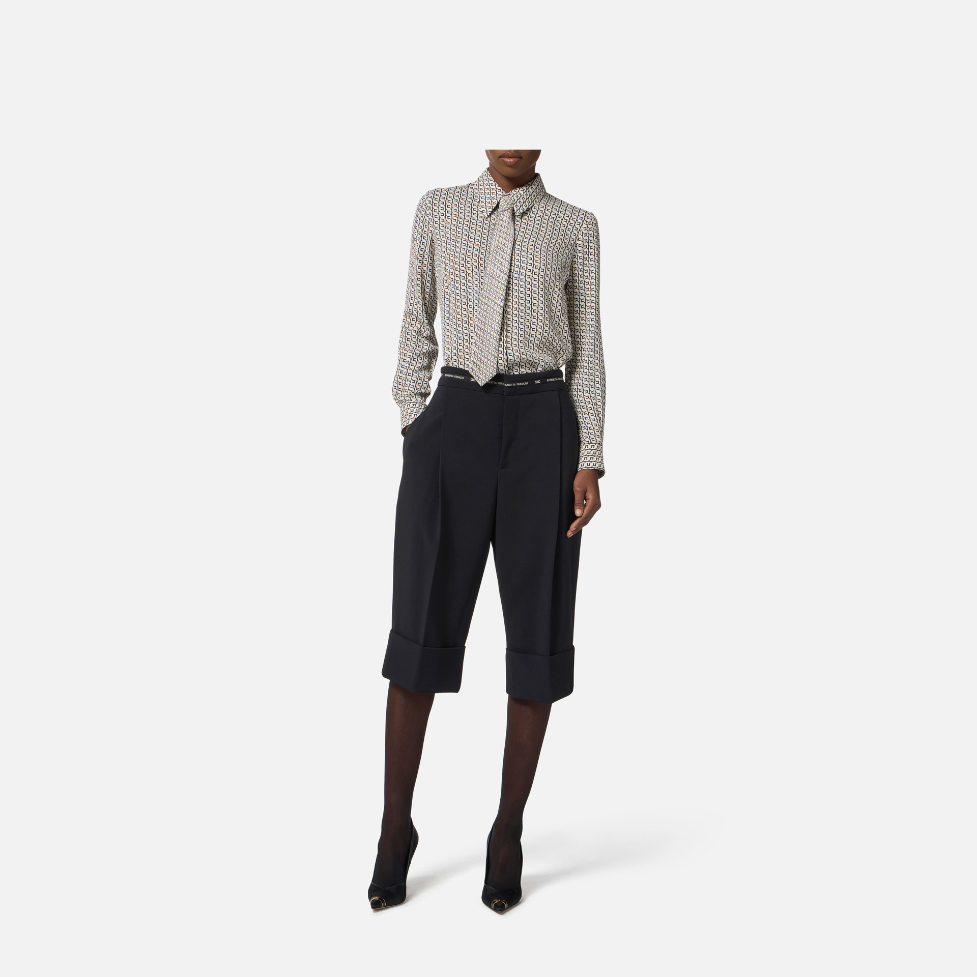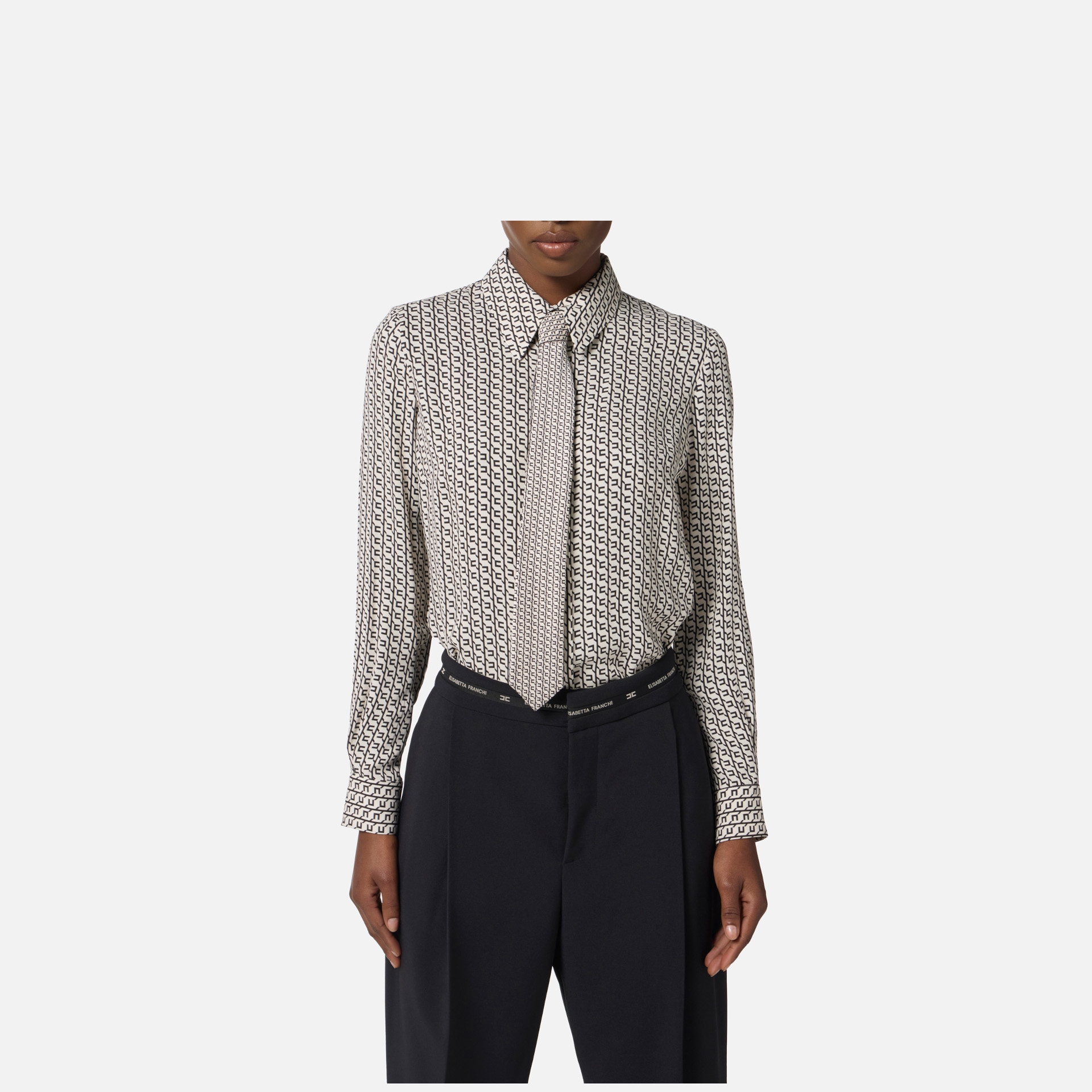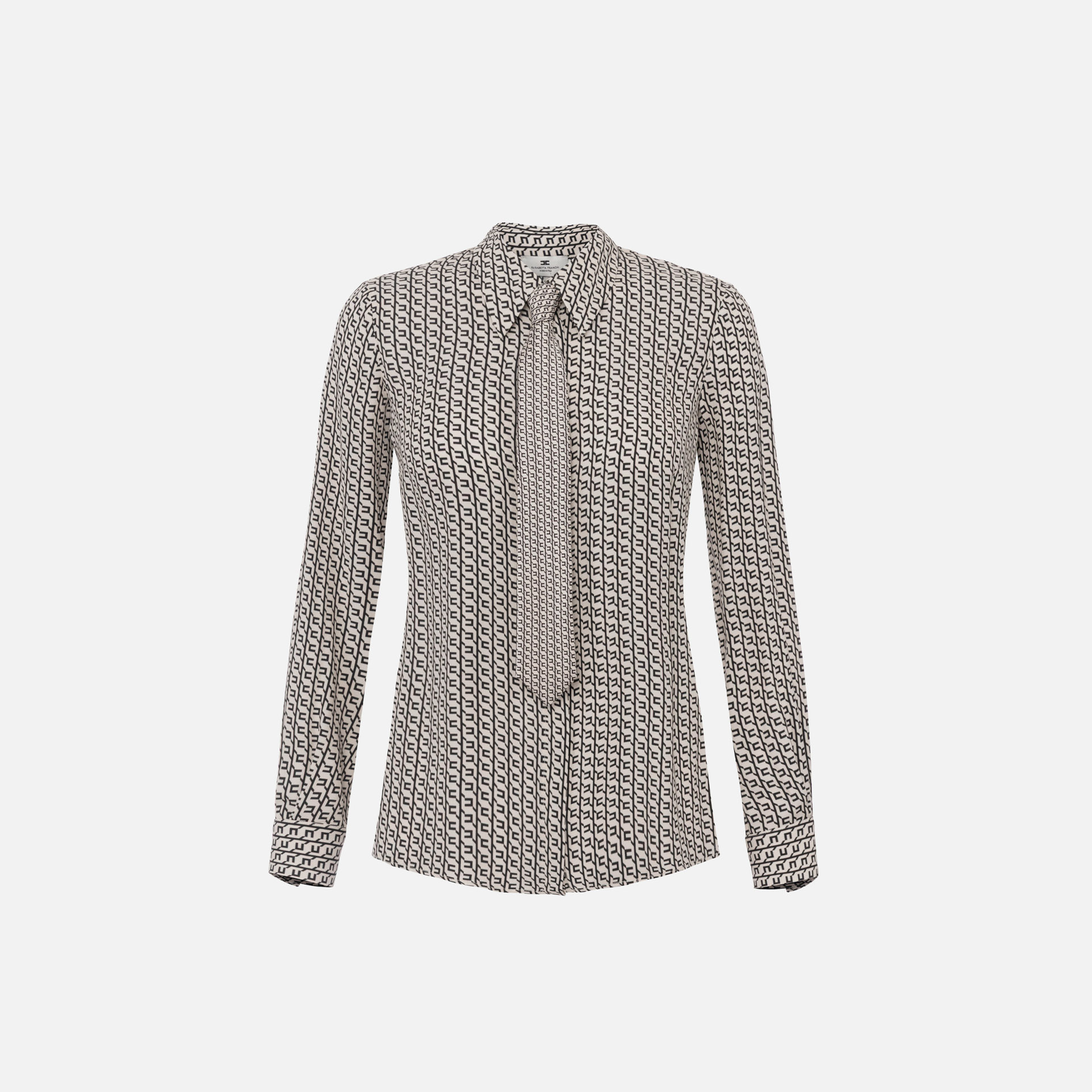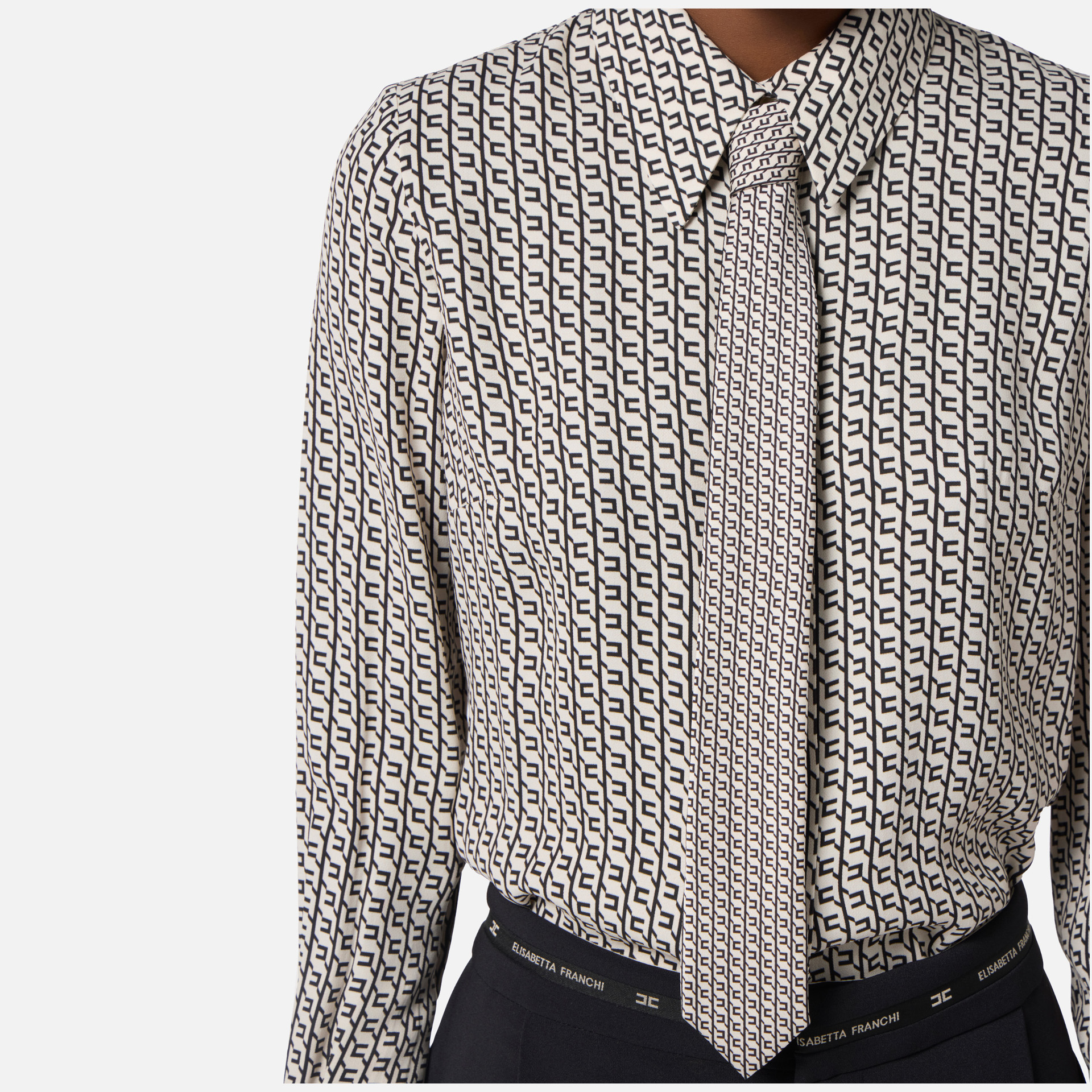 Cămașă Elisabetta Franchi – din vâscoză, imprimeu geometric, cravată și nasturi cu logo