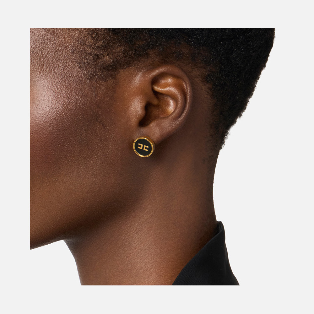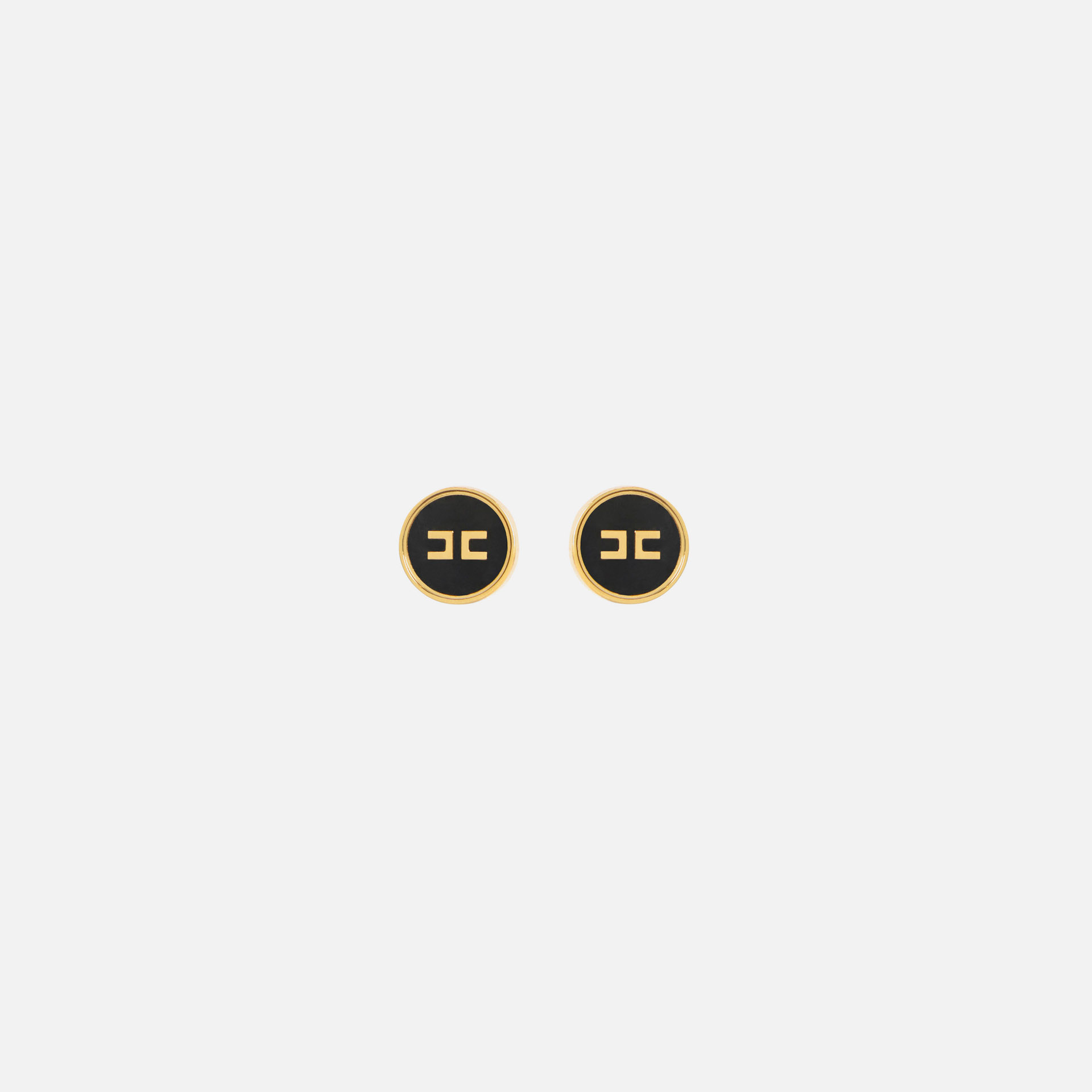 Cercei Elisabetta Franchicercei din metal auriu cu design elegant și sofisticat, inspirați de stilul clasic de nasturi. Logo-ul discret adaugă un accent distinctiv, iar închiderea cu pin asigură purtarea confortabilă și sigură.