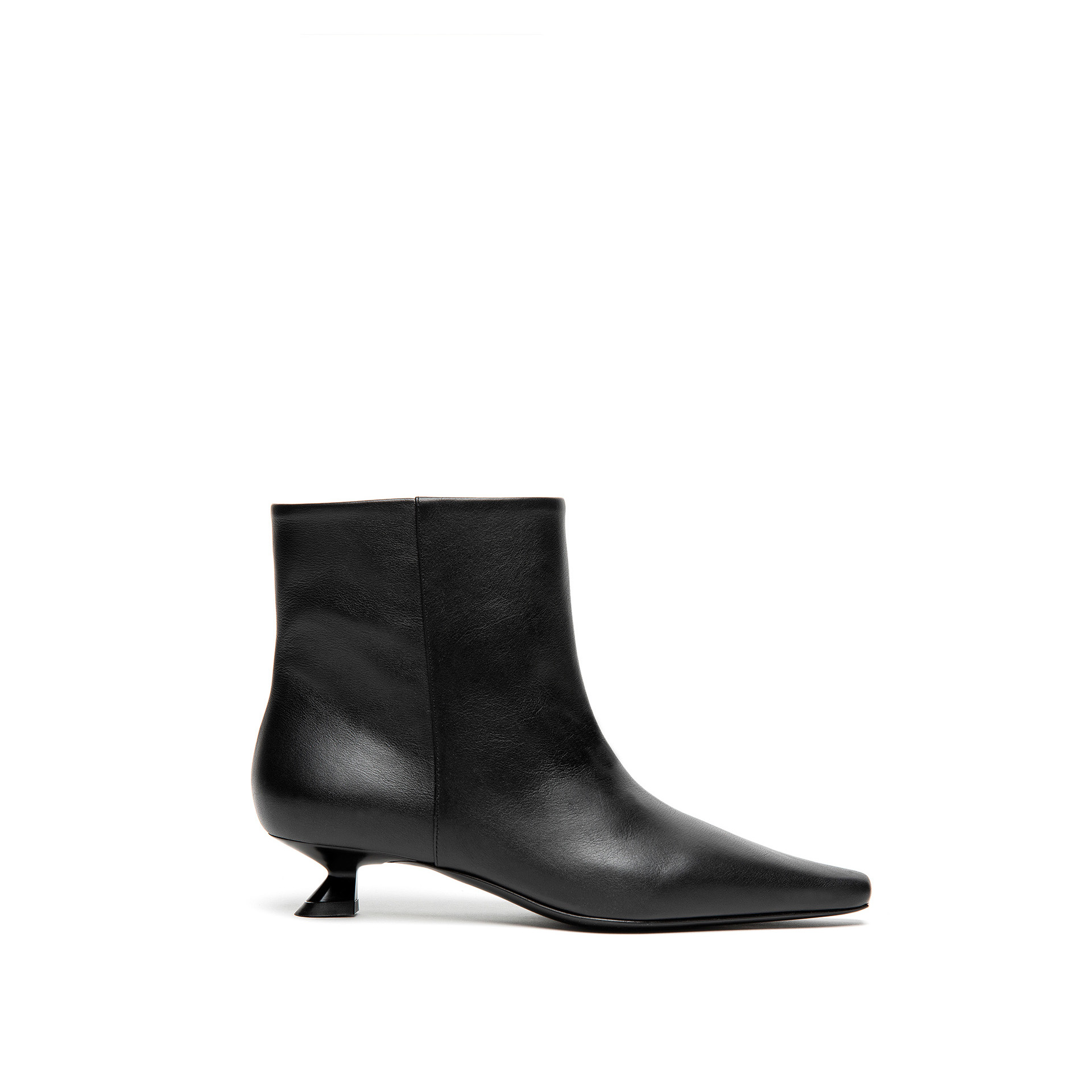 Cizme 3JUIN – din piele moale, toc sculptat 5 cm, vârf ascuțit
