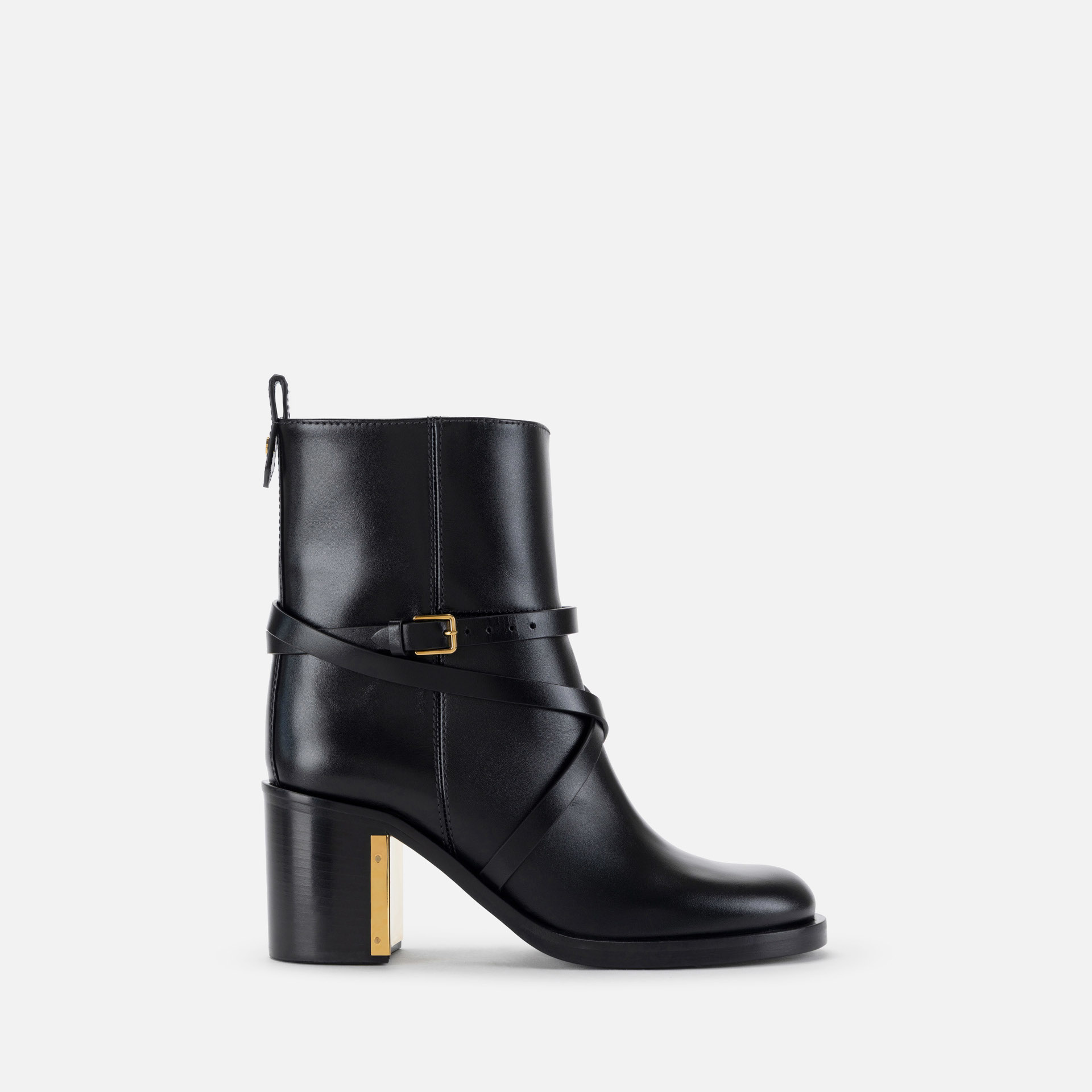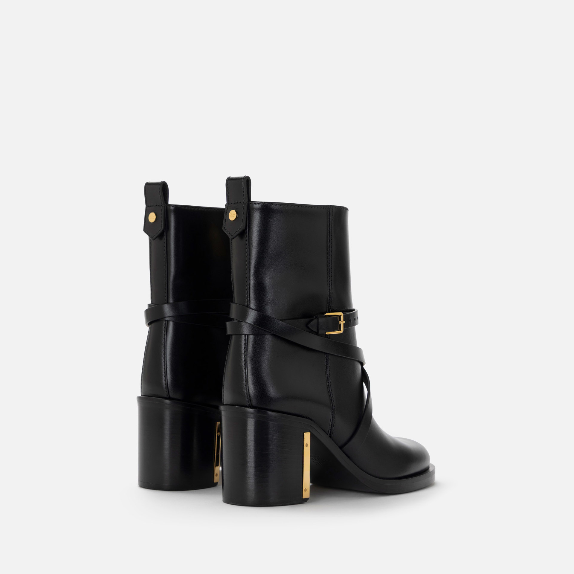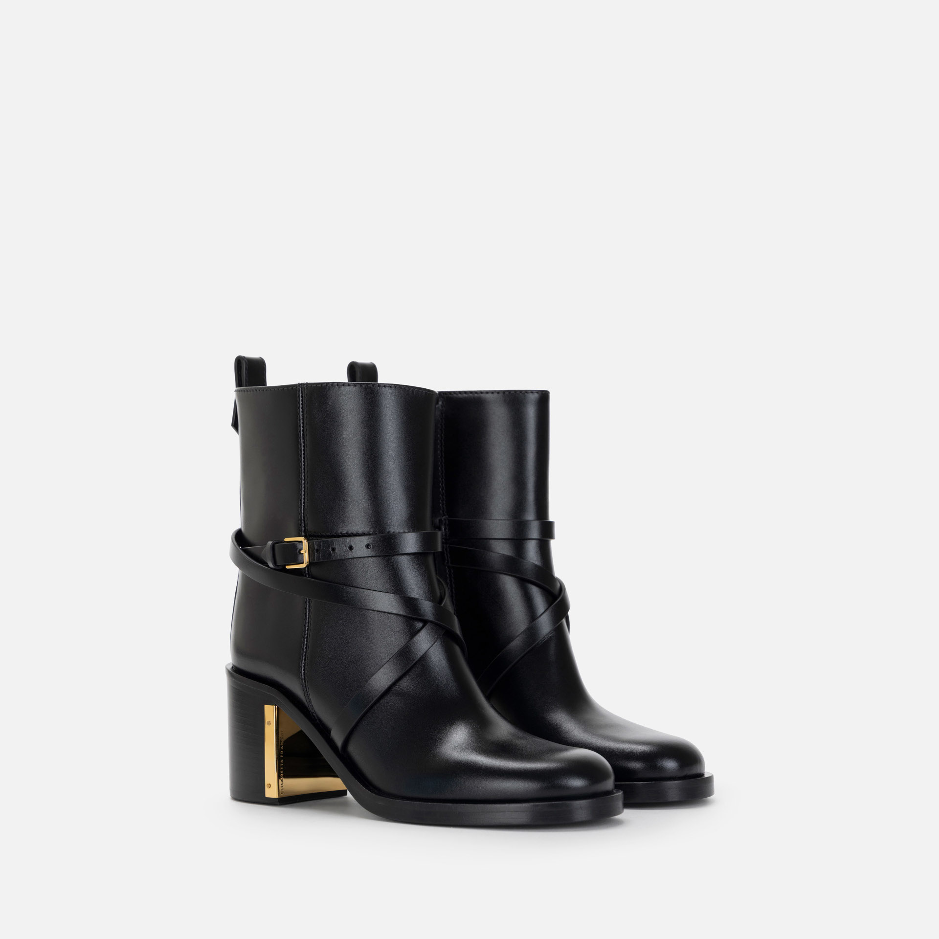 • Bretele încrucișate pe gambă, cu design arhitectural specific casei de modă
