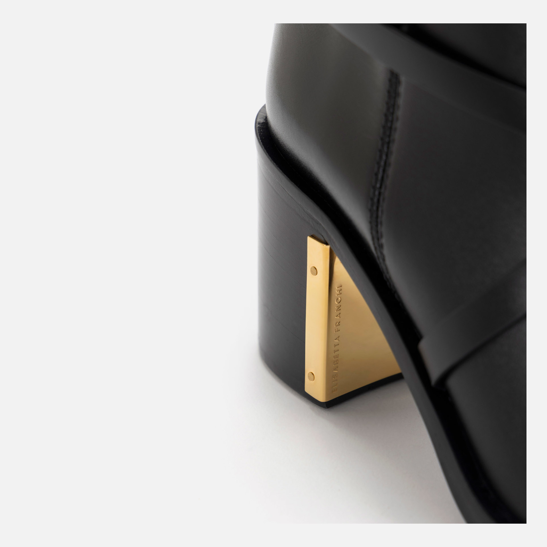 Aceste cizme Elisabetta Franchi sunt o piesă de încălțăminte statement, definite prin eleganță modernă și detalii metalice iconice ale brandului.