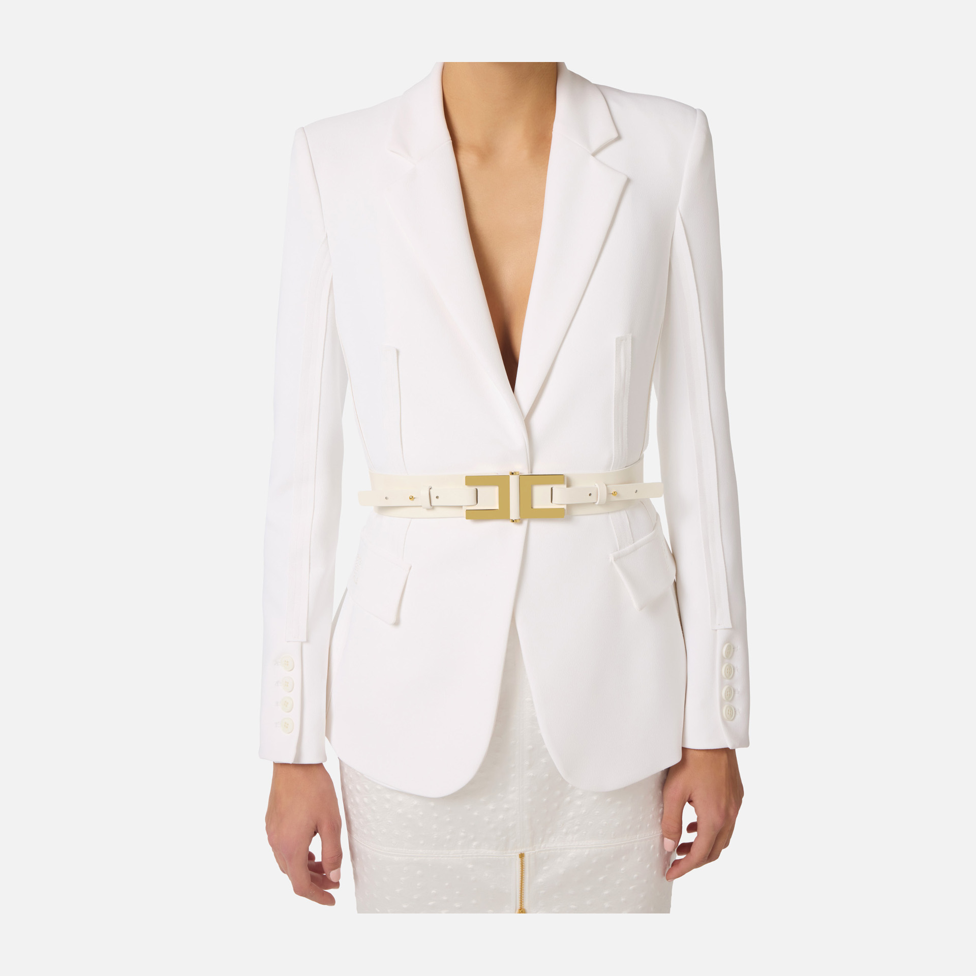 Această curea Elisabetta Franchi îmbină simplitatea elegantă cu accentele luxoase, fiind accesoriul perfect pentru un look sofisticat.