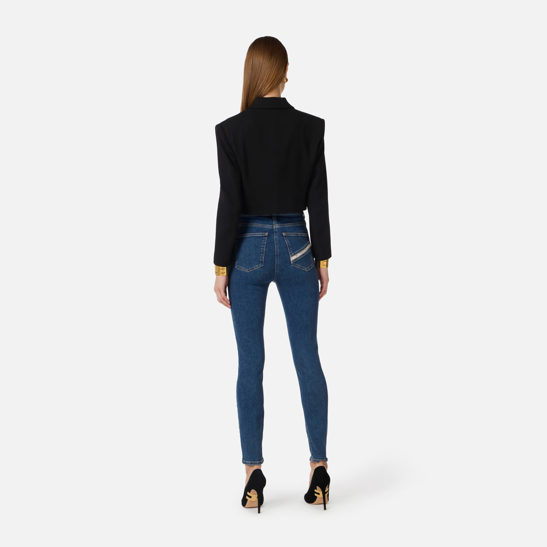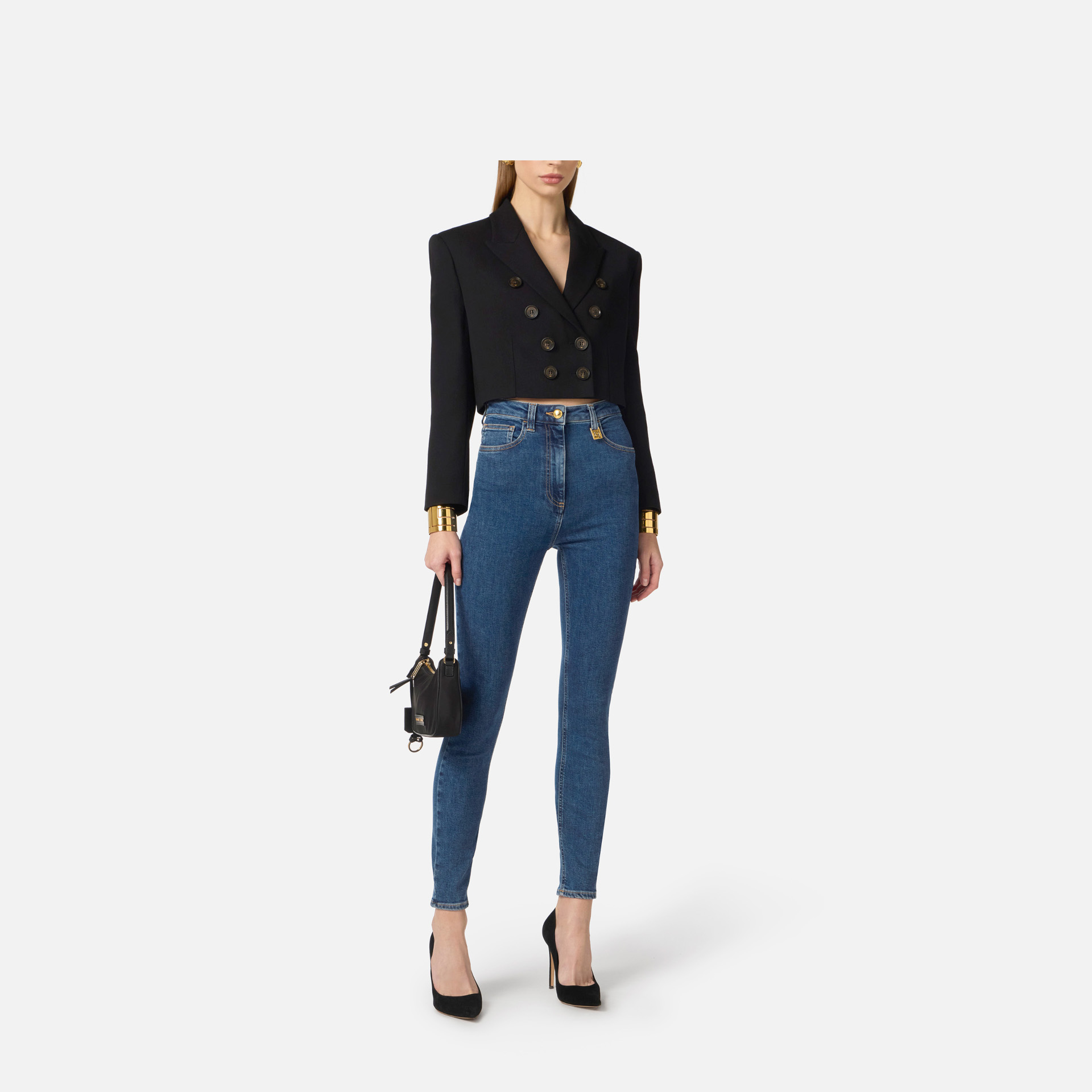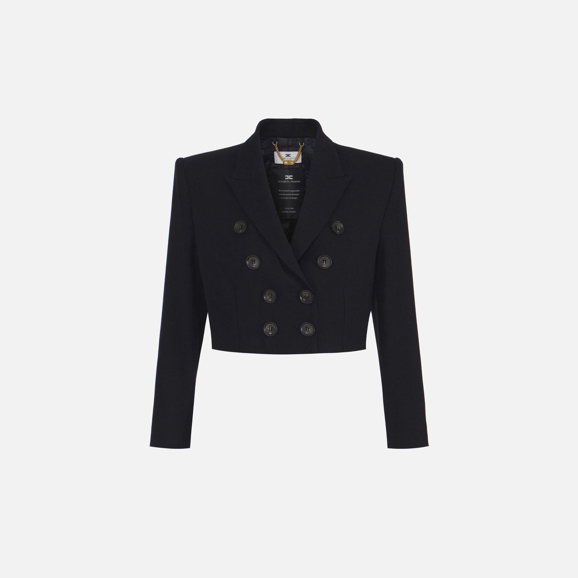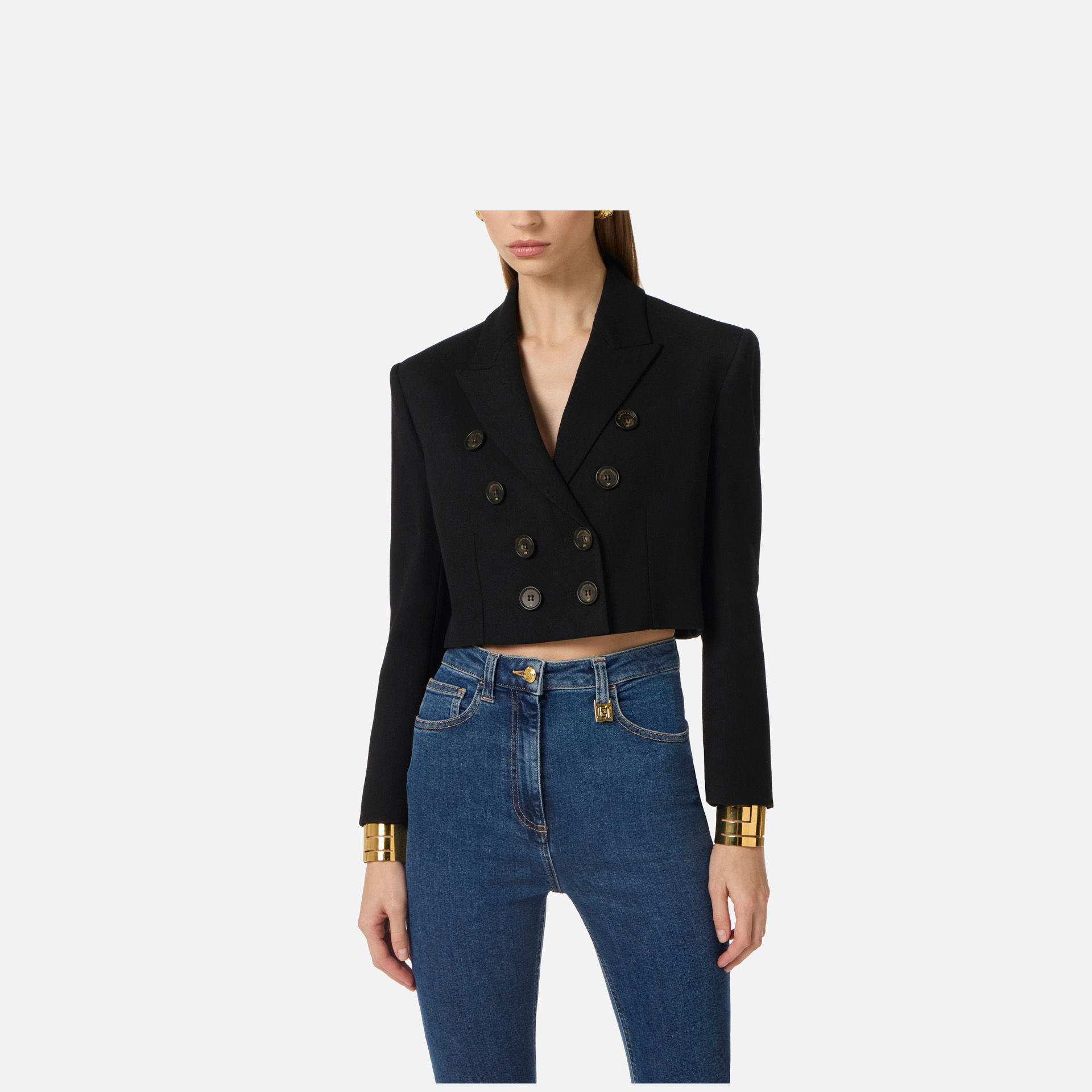 Jachetă Elisabetta Franchi – jachetă scurtă cu design elegant și structurat, perfectă pentru ținute sofisticate. Mânecile 7/8 și umerii structurați conturează o siluetă modernă, completată de detalii rafinate.