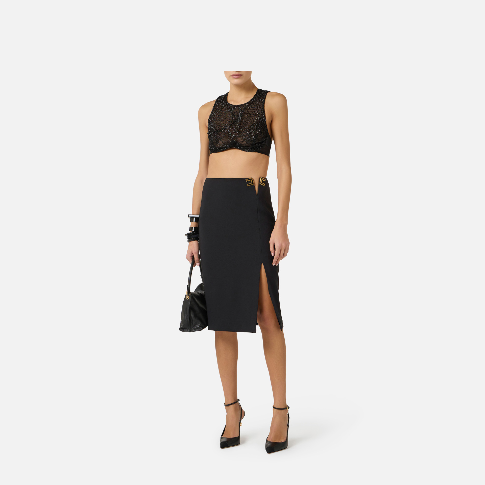 Acest top Elisabetta Franchi îmbină detaliile glamour cu designul contemporan, fiind alegerea perfectă pentru outfituri rafinate și pline de personalitate.